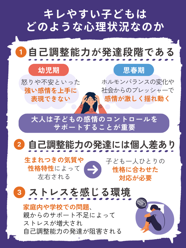 感情的になる原因の一つに、自己調整能力が発達段階であることが考えられます。