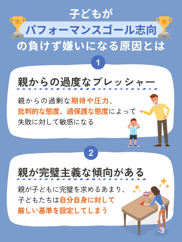 また、子どもが完璧主義に陥っていることも、パフォーマンスゴール志向を引き起こす要因となる可能性があります。