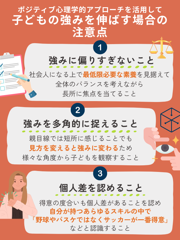 ポジティブ心理学的アプローチを活用して、子どもの強みを伸ばす場合の注意点