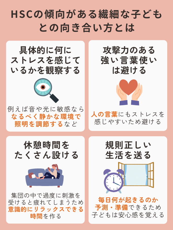 HSCの傾向がある子どもと向き合うためには、その子ども自身が何にストレスを感じているかを観察することが重要です。
